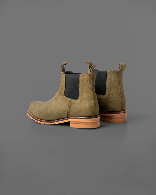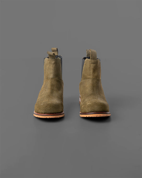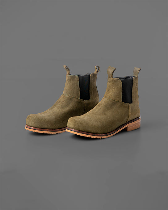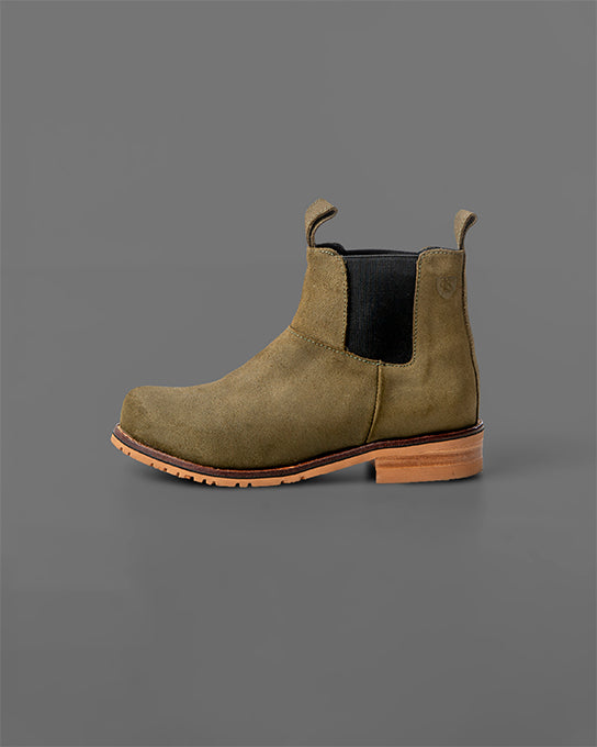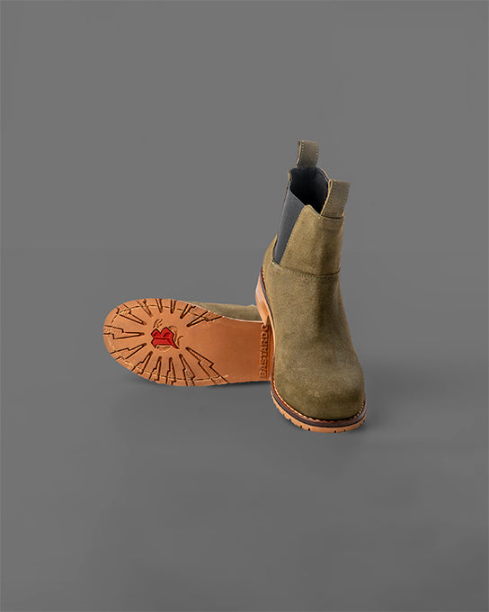 Botín de caña alta estilo Chelsea. Capellada 100% cuero engrasado. Suela y tapilla de caucho.