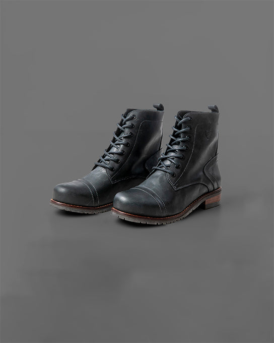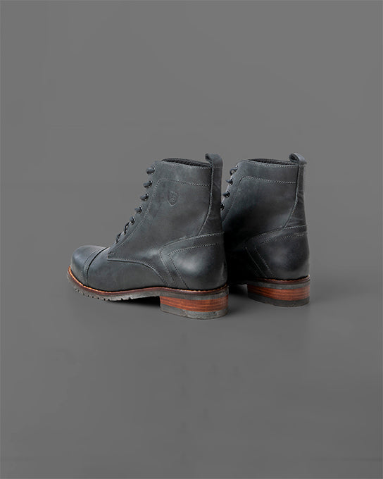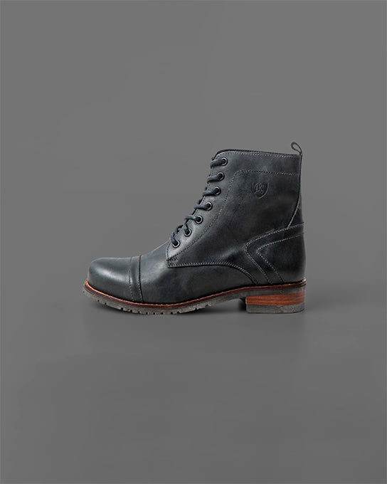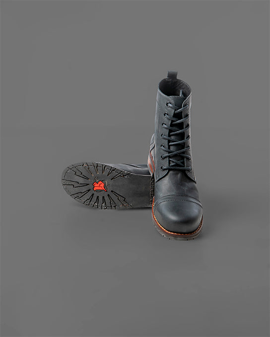 Botín caña alta de capellada y forro 100% cuero con cordones encerados y ojetillos metalicos, suela y tapilla de caucho.